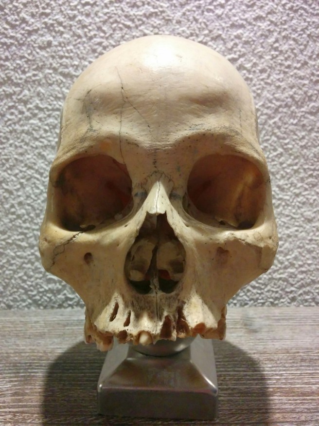 Der Vollständigkeit halber der Schädel auch noch mal von vorne. Sieht nach einer westlichen Frau mittleren Alters aus.