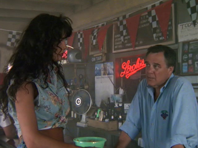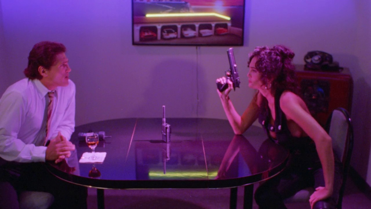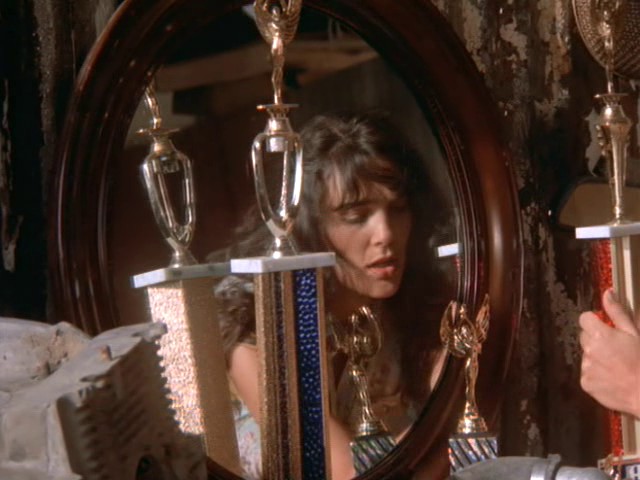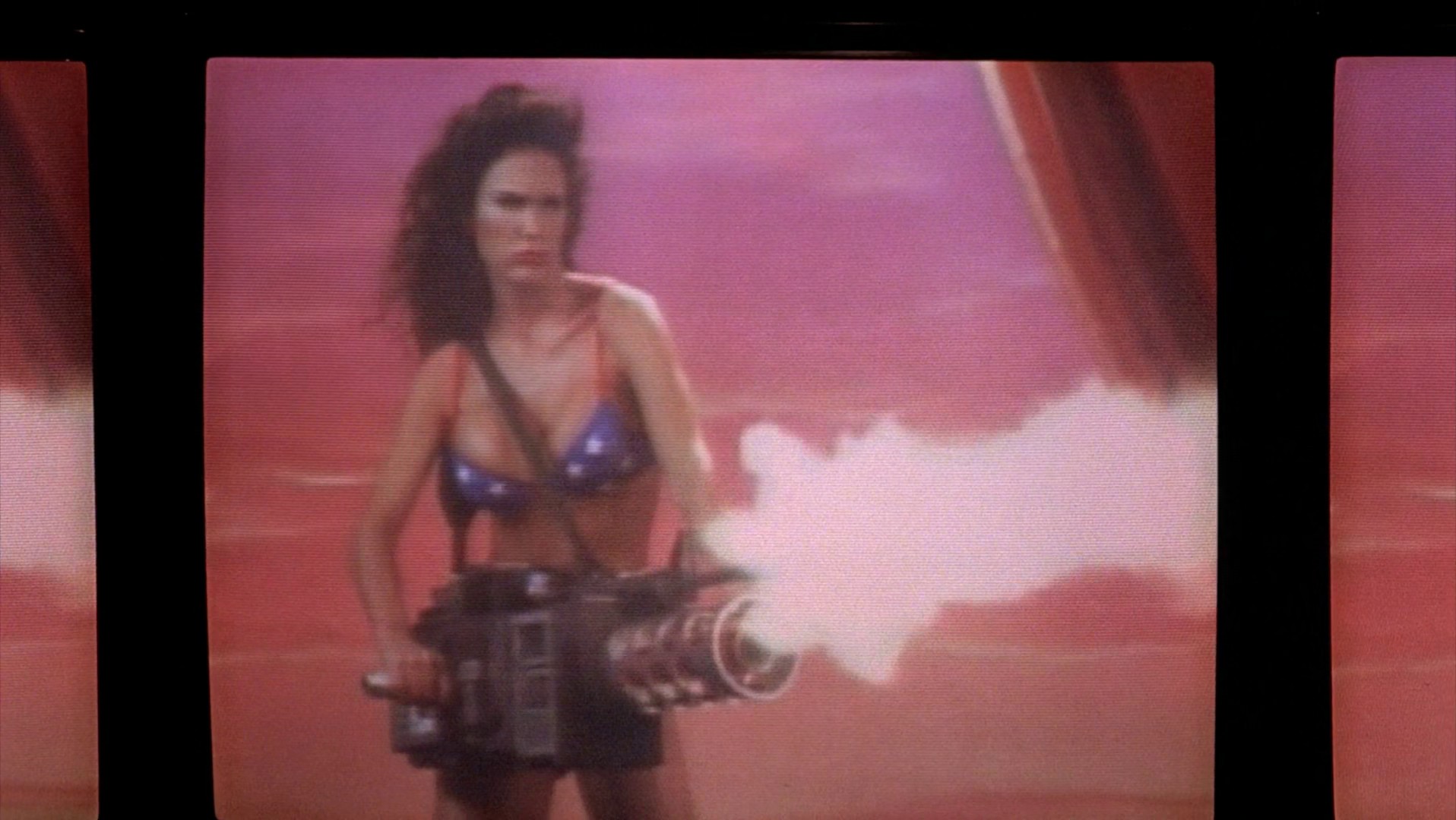 Meine erste Begegnung mit Julie Strain war Beverly Hills Cop III. Dort muss man genau hinsehen, um sie zu erkennen. Sie hat in dem Film einen Mini-Auftritt im Werbeclip für den „Annihilator 2000“.