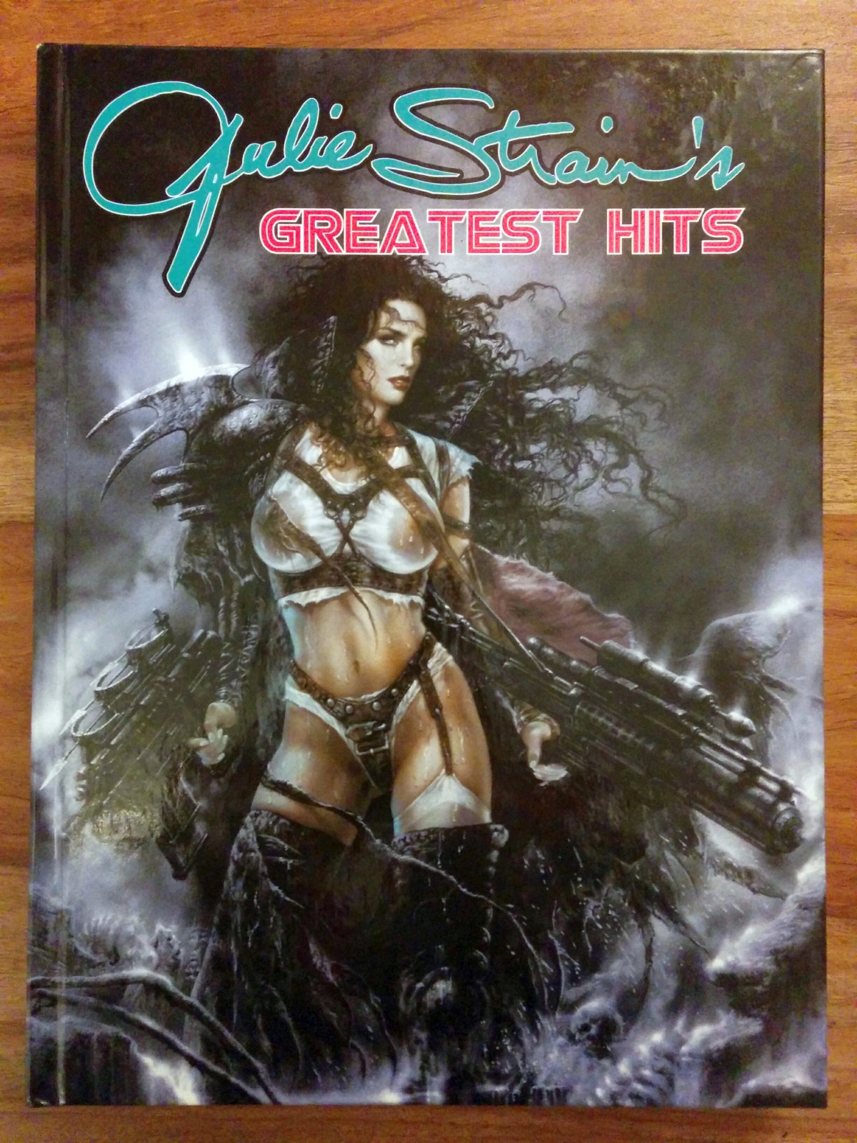 2001 erschien beim Heavy-Metal-Verlag das Buch „Julie Strain’s Greatest Hits“, das ich mir, damals noch ganz vom Julie-Fieber gepackt, direkt bestellte. Wenn man ein Buch von und über Julie Strain braucht, dann dieses. Greatest Hits beinhaltet die zuvor veröffentlichten Bücher „It’s only Art if it’s well hung“ und „Six Foot One and worth the Climb“, ergänzt um zusätzliches Material. Auf 300 Seiten gibt es die volle Julie-Strain-Packung von hart bis zart, von Trash bis Kunst.