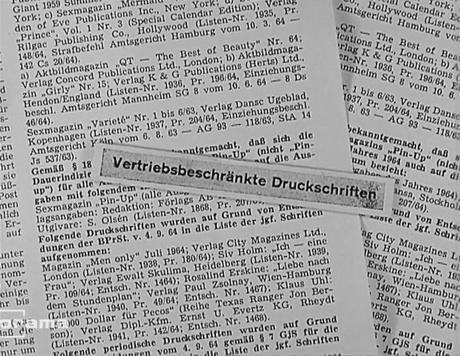 Zu Wort kommen verschiedene Protagonisten und Übeltäter. Der Geschäftsführer des schon damals umstrittenen Volkswartbundes etwa verkündet nicht ohne Stolz, dass der Volkswartbund zu den maßgeblichen Initiatoren des Gesetzes über die Verbreitung jugendgefährdender Schriften und damit der Schaffung der Bundesprüfstelle gehörte.
