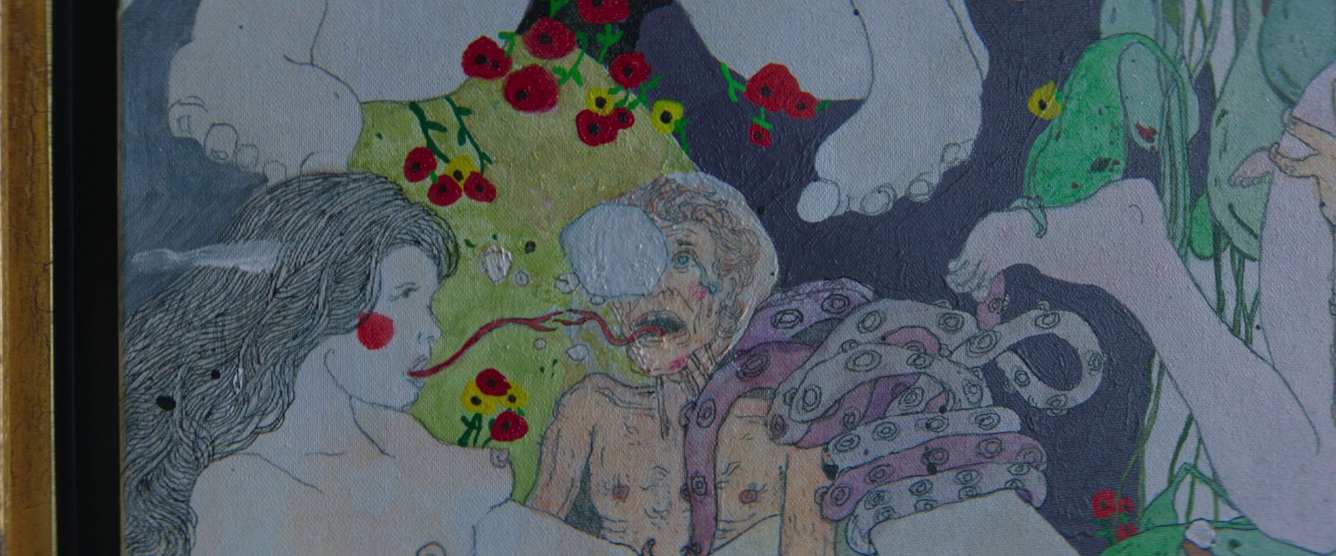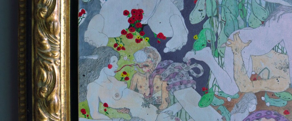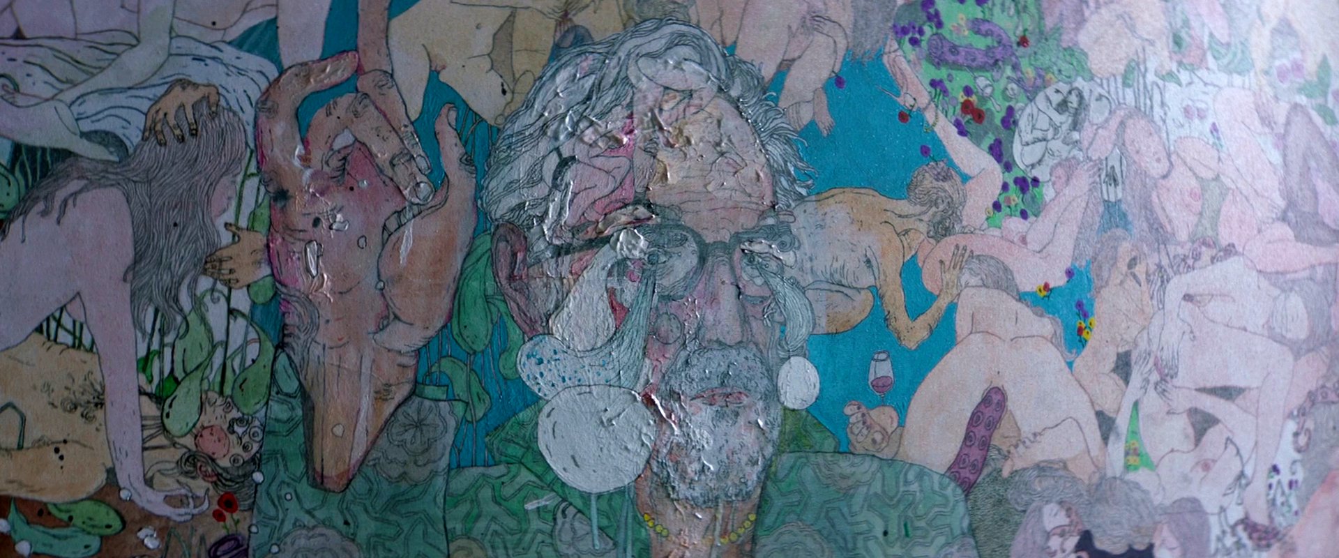 Als Nemo den Geheimraum verlässt, fällt sein Blick auf das Bild, das anstelle des Schiele-Porträts im Schlafzimmer an der Wand hängt. Eine infernalische Orgienszene, in der sich der Kunstsammler selbst hat verewigen lassen. Aus seinen Augen quellen blasenähnliche Formen heraus. Das Bild wurde vom griechischen Künstler Stefanos Rokos speziell für den Film angefertigt.