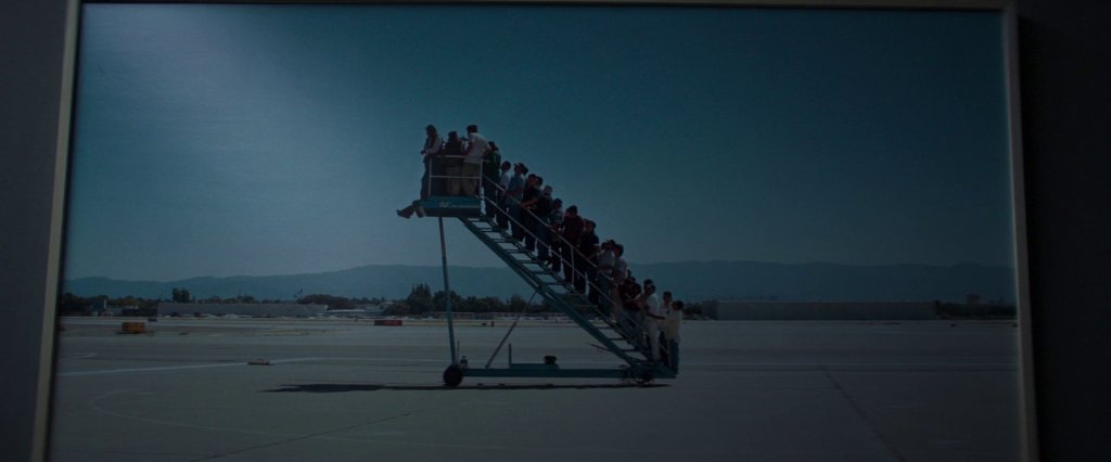 Wie William Blake in The Marriage of Heaven and Hell die Hölle besucht, steigt Nemo in seine eigene Unterwelt hinab. Die Flugzeugtreppe erinnert an eine Fotografie, die zuvor im Film zu sehen war; als die unerträgliche Hitze endlich abnahm und Nemo sich hoch in den kühlen Luftstrom der Klimanlage streckte. Dort hing an der Wand die Fotografie einer Flugzeugtreppe, gefüllt mit Menschen, die offenbar das Flugzeug verpasst hatten oder auf das nächste warteten. Ein seltsamer Zustand zwischen Aufbruch und Zurückgelassensein. Eine ähnliche Situation, in der sich Nemo jetzt befindet. Das Foto stammt aus dem Kurzfilm Centro di permanenza temporanea von Adrian Paci, in dessen Werken es um Heimat und Identität geht.