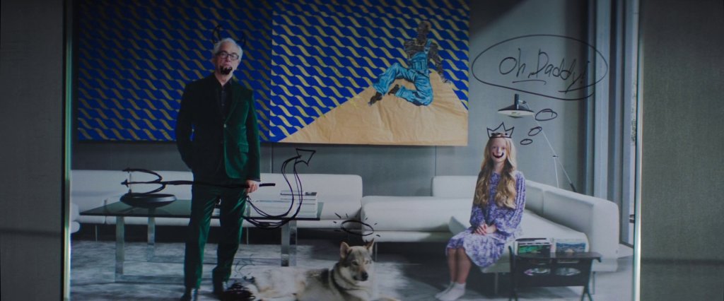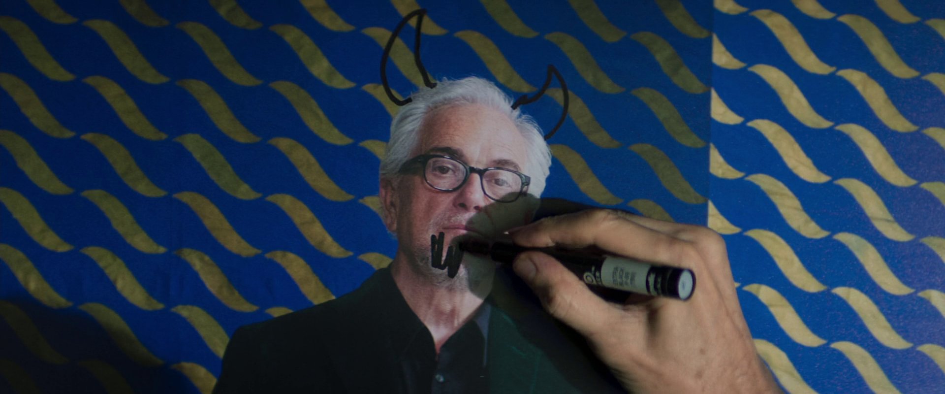 Das Foto wurde vor einem großen blau-goldenen Gemälde aufgenommen, bei dem es sich um ein Bild des brasilianischen Künstlers Maxwell Alexandre handelt. Interessanterweise trägt das Bild den Titel „Se eu fosse vocês olhava pra mim de novo“: „Wenn ich du wäre, würde ich mich noch einmal ansehen“. Der Künstler hat das Bild selbst mal so erklärt, dass es für das Gefühl steht, sich seines Standes und seiner Fähigkeiten bewusst zu sein. Stolz zu sein. Die Figur auf dem Bild blickt nach oben und das ganze Gold regnet auf sie hinab. Alexandres Worten nach „ist das der Höhepunkt des Selbstwertgefühls, der Gipfel des Narzissmus. Pures Empowerment.“ Das passt gut zu dem Kunstsammler – und dem Teufel.