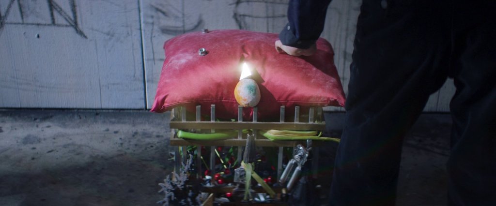 Eines Tages entdeckt Nemo eine Geheimtür im Kleiderschrank, die über einen grün beleuchteten engen Gang in einen Raum führt. Eine Gruft, in der die lebensgroße, täuschend echt aussehende Nachbildung des Kunstsammlers aufgebahrt liegt. Ein makaberes Memento Mori der Vergänglichkeit.
