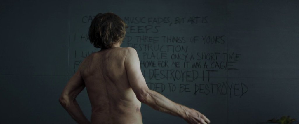 So passt auch das exzellente Filmposter gleich in doppelter Hinsicht. Es zeigt Dafoe in dem Apartment, das einem Glaskasten gleichkommt, und als Tagline ist zu lesen: „A solitary Exhibition“. Dafoes Figur Nemo ist auf ironische Art einer Einzelausstellung ausgeliefert. Er alleine mit den ganzen Kunstobjekten eingeschlossen im Apartment. Auf der anderen Seite blickt der Zuschauer von außen auf den Kasten und bekommt eine Einzeldarbietung von Dafoes wahnwitzigem Schauspiel geliefert.