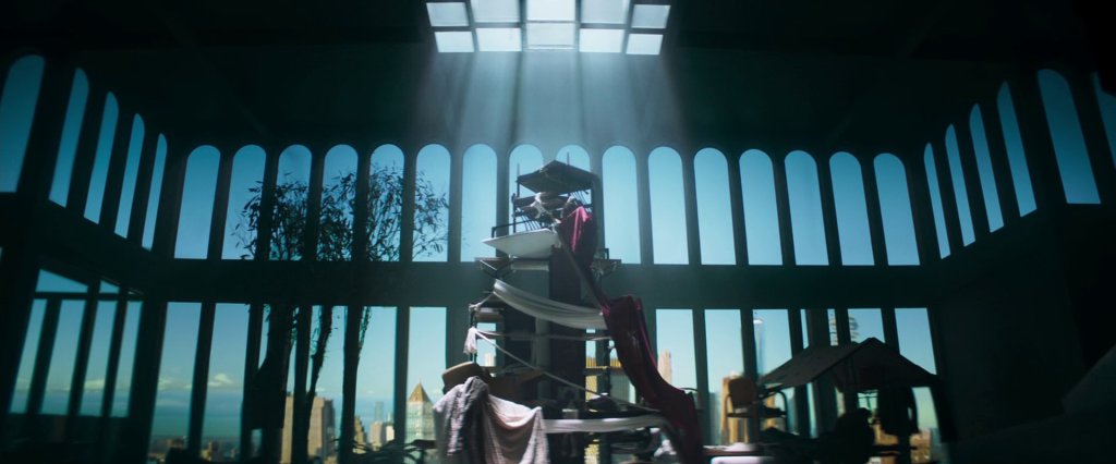 Die Kamera fährt über Details des Apartments hinweg und der Film endet in der Totalen des gigantischen Turms mit dem gleißend weißen Licht des Dachfensters. Dass der Turm an eine moderne Kunstinstallation erinnert, ist natürlich kein Zufall; so wie nichts in dem Film Zufall ist. Tatsächlich wurde der Turm von einem Kunstprojekt von Joanna Piotrowska inspiriert, von dem man Bilder ganz zu Anfang des Films entdecken kann.