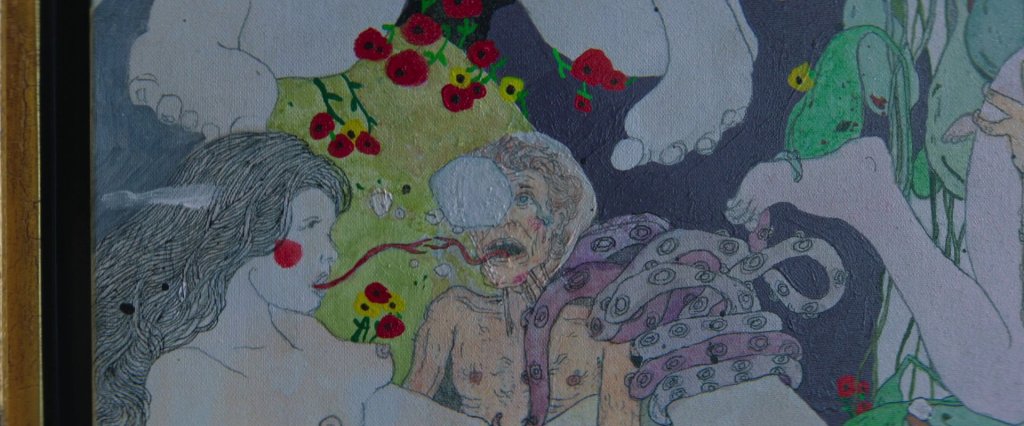 Die Kamera zoomt langsam auf ein Detail am unteren linken Bildrand. Man sieht eine Figur, die eindeutig wie Nemo aussieht. Diese Figur hält eine Frau. Wie Schlangen kommen gespaltene Zungen aus ihren Mündern und züngeln sich an. Gegenschnitt auf Nemo, der das Gesicht verzieht und in Selbsterkenntnis „Du!“ rauspresst. In diesem Zusammenhang ist erwähnenswert, dass der dünne. ausgemergelte Körper auf Schieles Selbstporträts optisch auch ein wenig an Nemo/Willem Dafoe erinnert. Laut Regisseur kein Zufall.