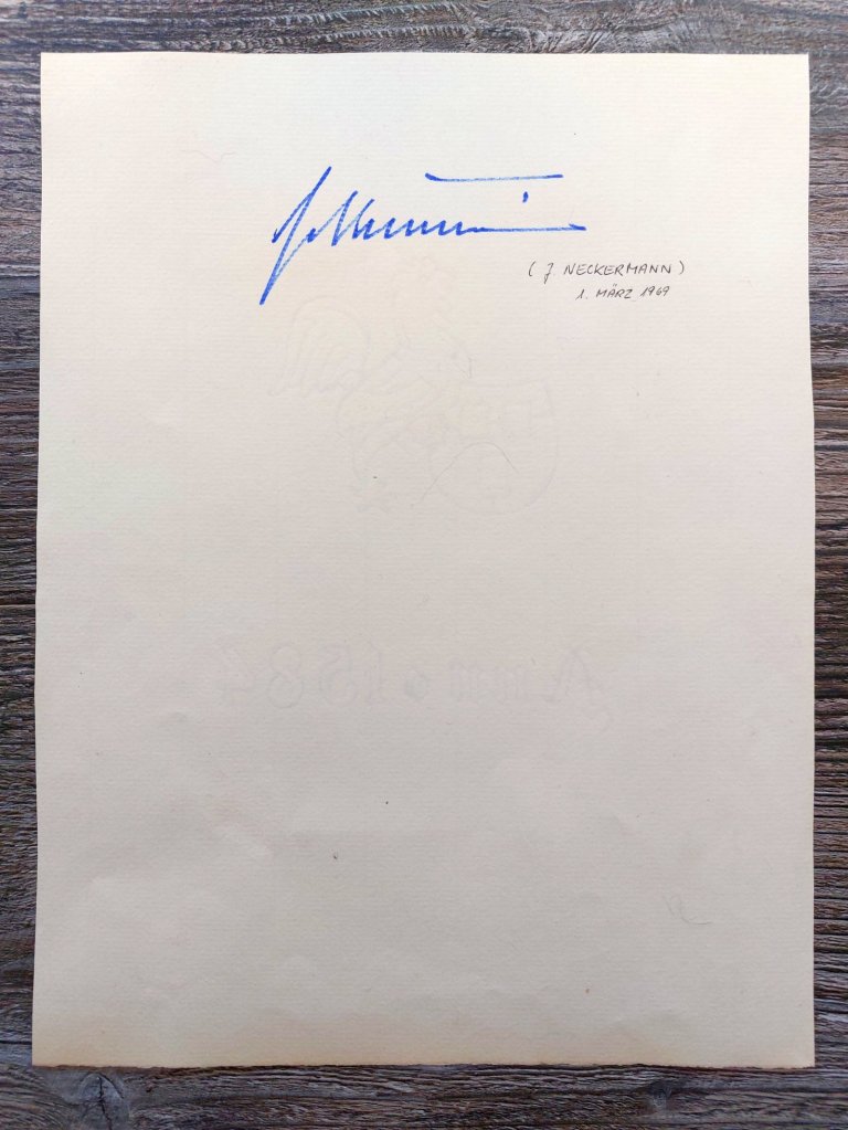 Auf der Rückseite findet sich noch die Unterschrift von Josef Neckermann, der Gründer des Neckermann-Versands. Er war am 1.3.1969 Hotelgast.