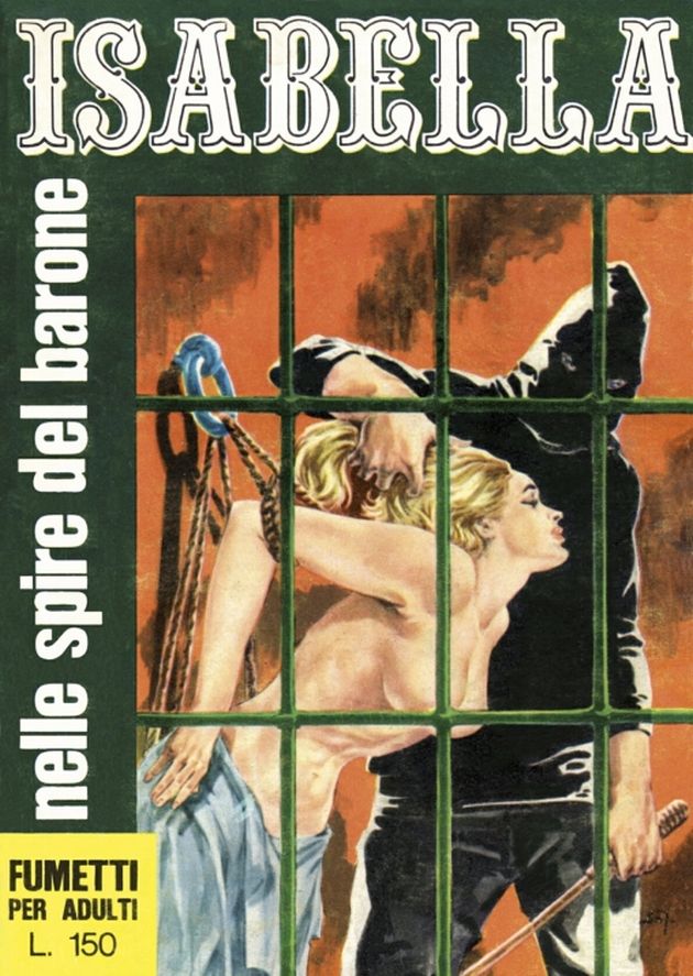 Bei den italienischen Titelbildern erkennt man auch gut die zu dieser Zeit noch recht zahme Darstellung. Isabella trägt Negligé und die Nippel sind strategisch geschickt von den Gitterstäben verdeckt.