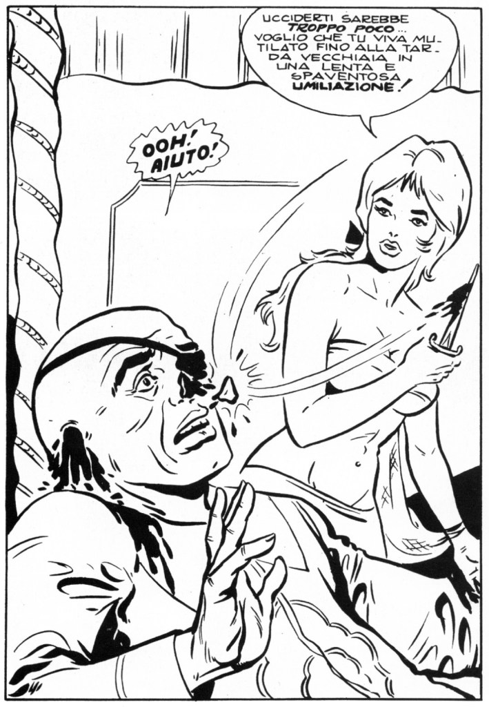 Wurden dann doch mal Ausgaben am Kiosk beschlagnahmt, tauschten die Verlage daraufhin nicht selten einfach Coverbild und Titel aus, und veröffentlichten den Comic Wochen später einfach noch einmal. Aber es gab auch eine Zeit der Selbstzensur, in der zumindest die Cover, die oftmals der eigentliche Stein des Anstoßes waren, entschärft wurden. Nackte Brüste wurden mit Haaren oder Kleidungsstücken abgedeckt, Blut und allzu viel Gewalt vermieden. Paradoxerweise blieben dabei die Geschichten im Innenteil unangetastet. Diese keusche Phase war nur von kurzer Dauer. Als Ende der 70er Jahre auch in Italien das Pornografieverbot fiel, öffneten sich ohnehin alle Schleusen des Darstellbaren.