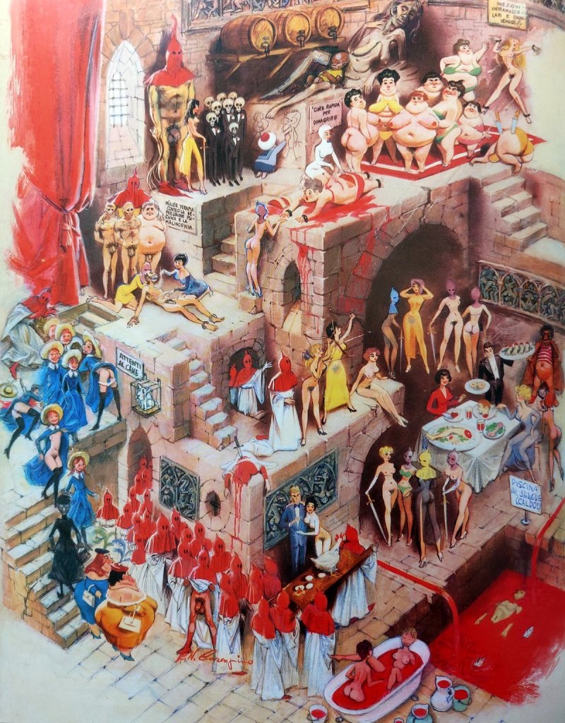Nach dem Besuch der Kunstakademie in Brera, wo er bei Achille Funi lernte, arbeitete Fernando Carcupino (1922 – 2003) zunächst als Animator beim Film. Dabei war er u.a. an der Entstehung von Die Rose von Bagdad beteiligt, der erste italienische Film im Technicolor-Verfahren. Er begann Comics zu zeichnen und illustrierte Bücher wie beispielsweise Sherlock Holmes und Maigret. In den 1950er und 60er Jahren schuf er Cover für etliche Zeitschriften des Verlags Mondadori und arbeite für das Magazin La settimana umoristica, für das er nicht nur Cover malte, sondern auch Witze illustrierte, die von Lesern eingesandt wurden. In den 70er Jahren malte Taglietti Pinups für das erotische Humormagazin La Giraffa und Fumetti-Cover, darunter Mezzanotte, I Notturni, Lo Scheletro, Sexy Favole, Tabù, UFO und Il Vampiro.