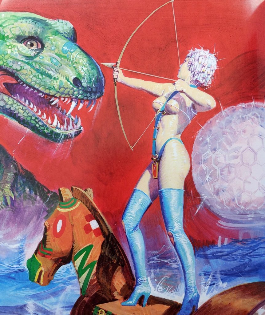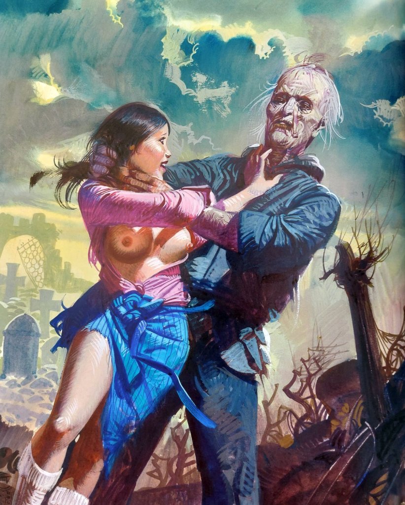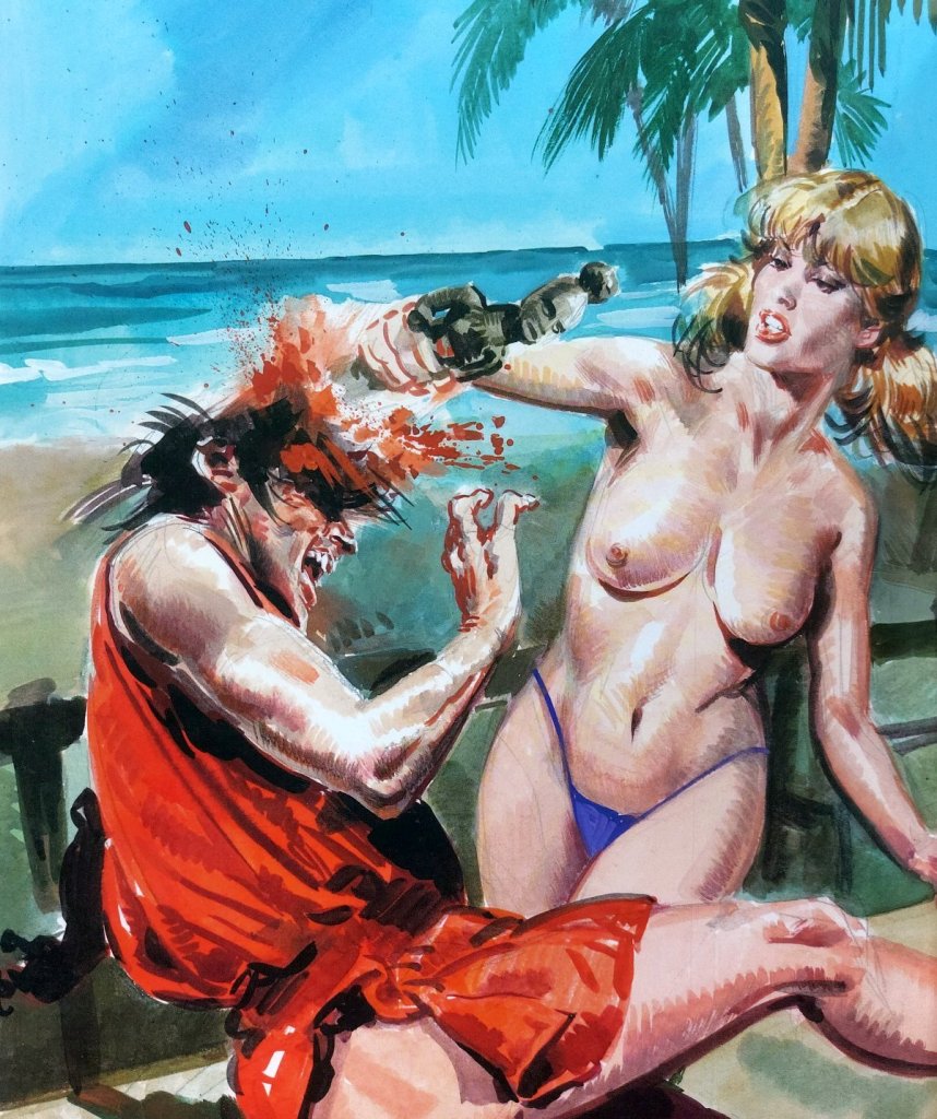 Auf der anderen Seite hat Alfrey nicht Unrecht; und vielleicht muss er das in einem Buch über Cover-Bilder auch so schreiben. Die Cover waren natürlich enorm wichtig für die Vermarktung und sind das, was als erstes ins Auge sticht. Es sind die knalligen, plakativen, lüsternen Köder. Ein Versprechen – und doch nur eine vage Andeutung von dem, was den Leser im Inneren des Hefts erwartet. Die Cover sind krass, gewaltvoll, sexistisch, obszön und haben, wie die Comic-Geschichten selbst, auch heute nichts von ihrer Wirkung verloren. Gleichzeitig sind die Bilder oftmals so übertrieben in ihrer Darstellung und so bemüht um Schock, dass man sie kaum Ernst nehmen kann. Es ist purer Pulp und schönster Schund.