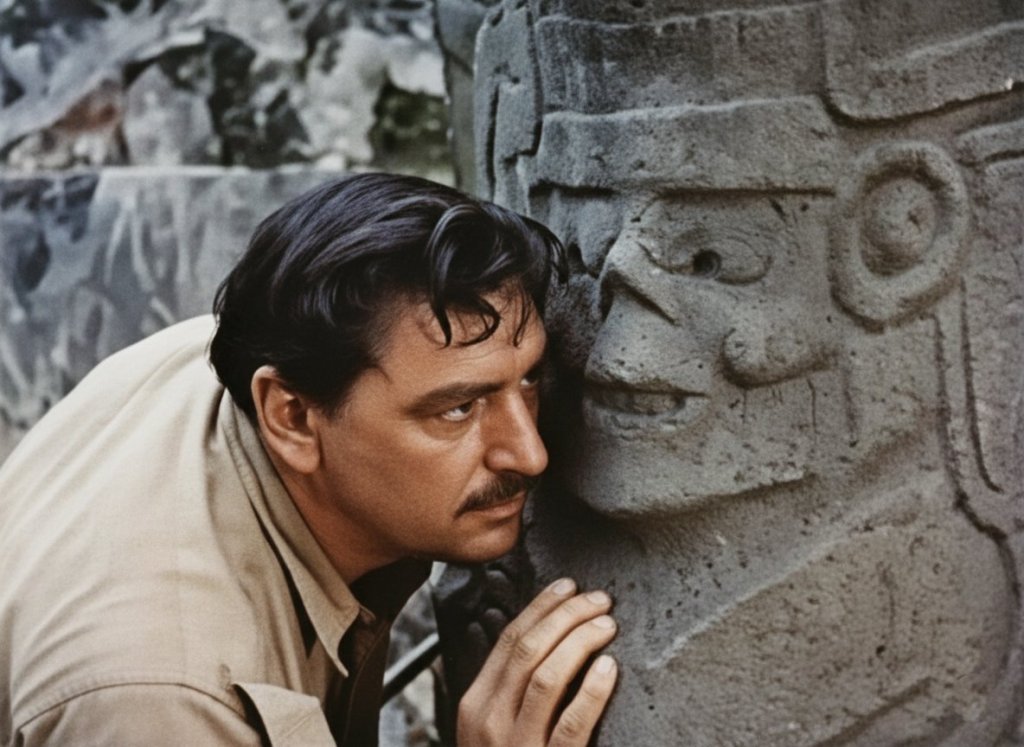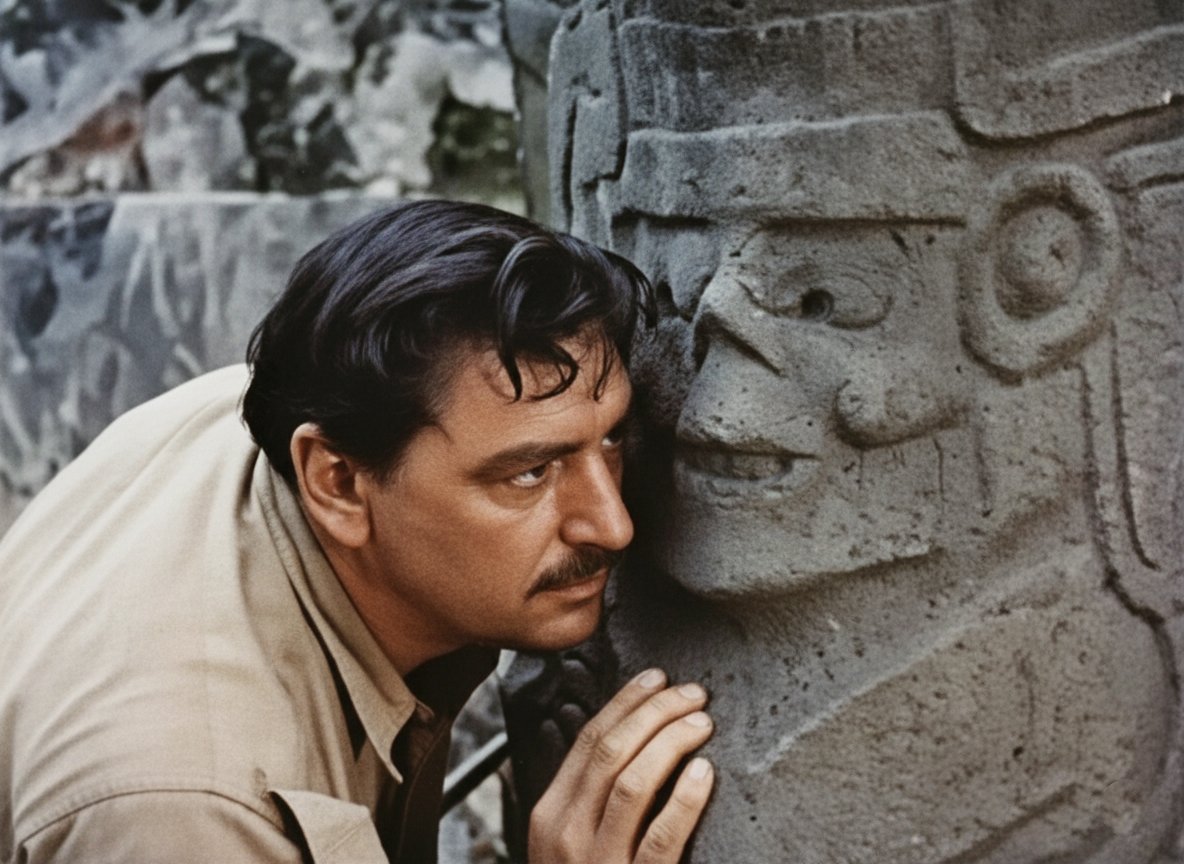 The Sacred Idol, ein Film, der in keiner Datenbank auftaucht und der laut Wikipedia nie gedreht wurde. Doch das stimmt nicht ganz. Bei The Sacred Idol handelt sich eigentlich um den mexikanischen Film La Ciudad Sagrada (1959), der in dieser Form nie eine Veröffentlichung in den USA hatte und auch sonst außerhalb von Mexiko nirgends erschienen ist. Stattdessen wurde der Film für die US-Fassung mit neu gedrehten Szenen und jeder Menge Archivmaterial zusammengeschnitten, und 1964 unter dem Titel The Mighty Jungle herausgebracht. Die Verbindung zu Baxters Soundtrack-Album war so nicht mehr nachzuvollziehen, zumal im Film von Baxters Musik auch eher wenig zu hören ist.