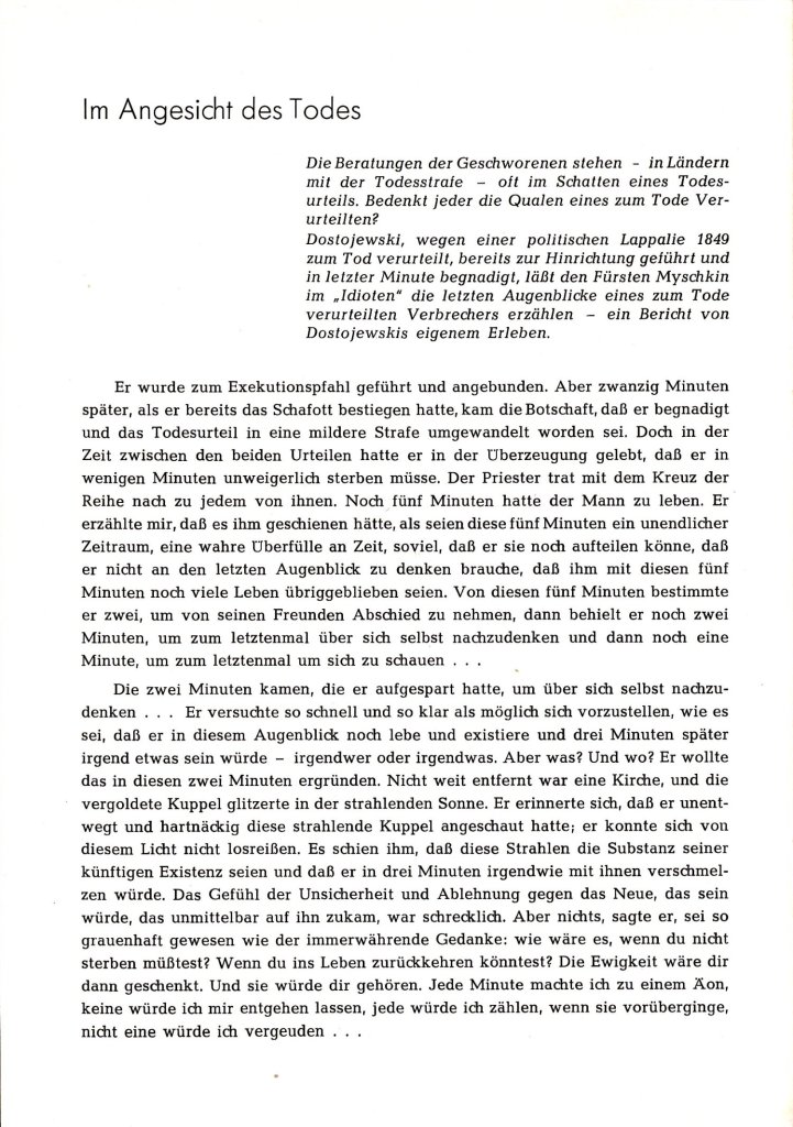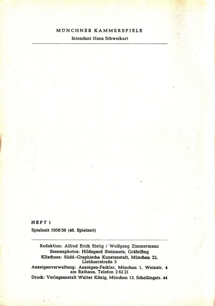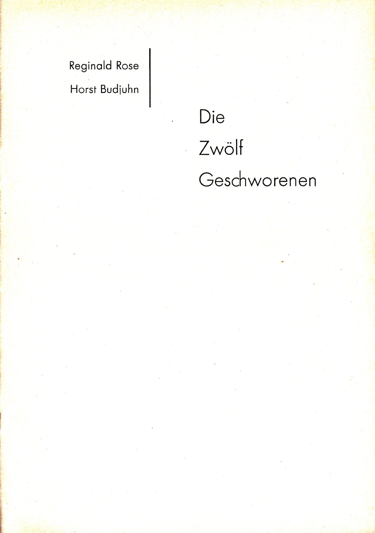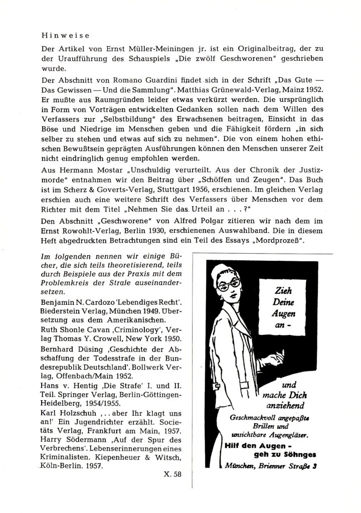 Das Programmheft zur deutschen Uraufführung von Reginald Roses Die zwölf Geschworenen an den Münchner Kammerspielen 1958 habe ich in einem Online-Antiquariat entdeckt. Das Heft enthält einige interessante Texte zur rechtlichen und gesellschaftlichen Einordnung des Stücks. Außerdem erklärt Reginald Rose, wie ihn die eigene Erfahrung als Geschworener zu dieser Geschichte inspirierte.