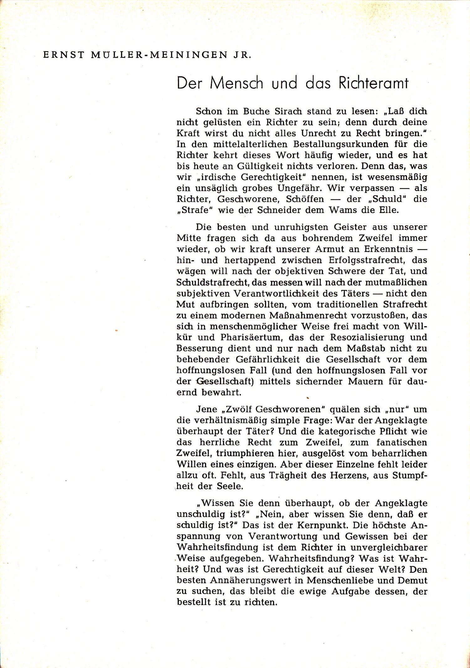 Auf den ersten Blick haben sie eine klar definierte Aufgabe. Sie sollen aufgrund der Beweislage möglichst objektiv entscheiden, ob ein Sohn seinen Vater erstochen hat oder nicht. Schon nach den ersten Wortwechseln stellt sich heraus, dass die meisten nicht gewillt sind, sachlich-juristisch zu denken. Unwillkürlich verknüpfen sie die Tat mit ihrem eigenen Schicksal, urteilen nicht nach den Inidizien, sondern nutzen das Verbrechen als Beweis für ihre eigenen Vorurteile. Sie diskutieren nicht um die Wahrheit, sondern beginnen miteinander zu streiten […] Das Fazit: Alle Menschen können sich irren. Zur Erkenntis der Tatsachen führt nur die Vernunft, nicht das Gefühl.“