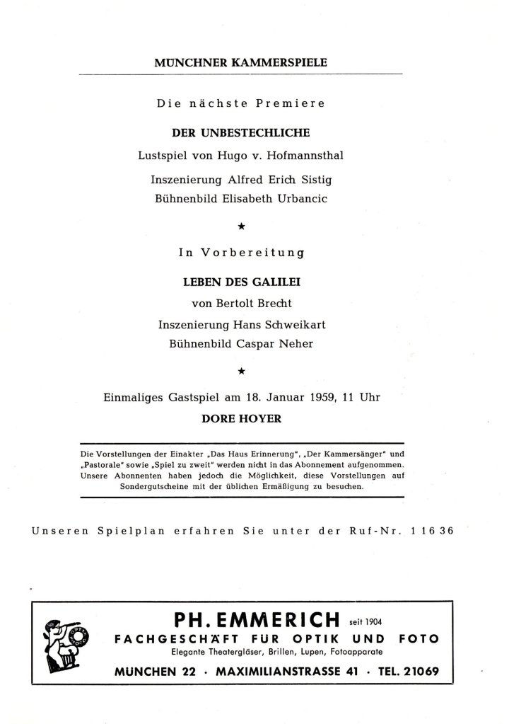 Tappert selbst will es gar gewesen sein, der das Stück an die Kammerspiele brachte, da er von der Verfilmung so beeindruckt gewesen sei. Der Intendant der Kammerspiele, Hans Schweikart, wiegelte zunächst ab. Als Kammerspiele könne man es sich nicht leisten einen Film nachzuspielen. Nachdem Schweikart das Stück gelesen hatte, entschied er sich allerdings um. Es war genau das, was er suchte.
